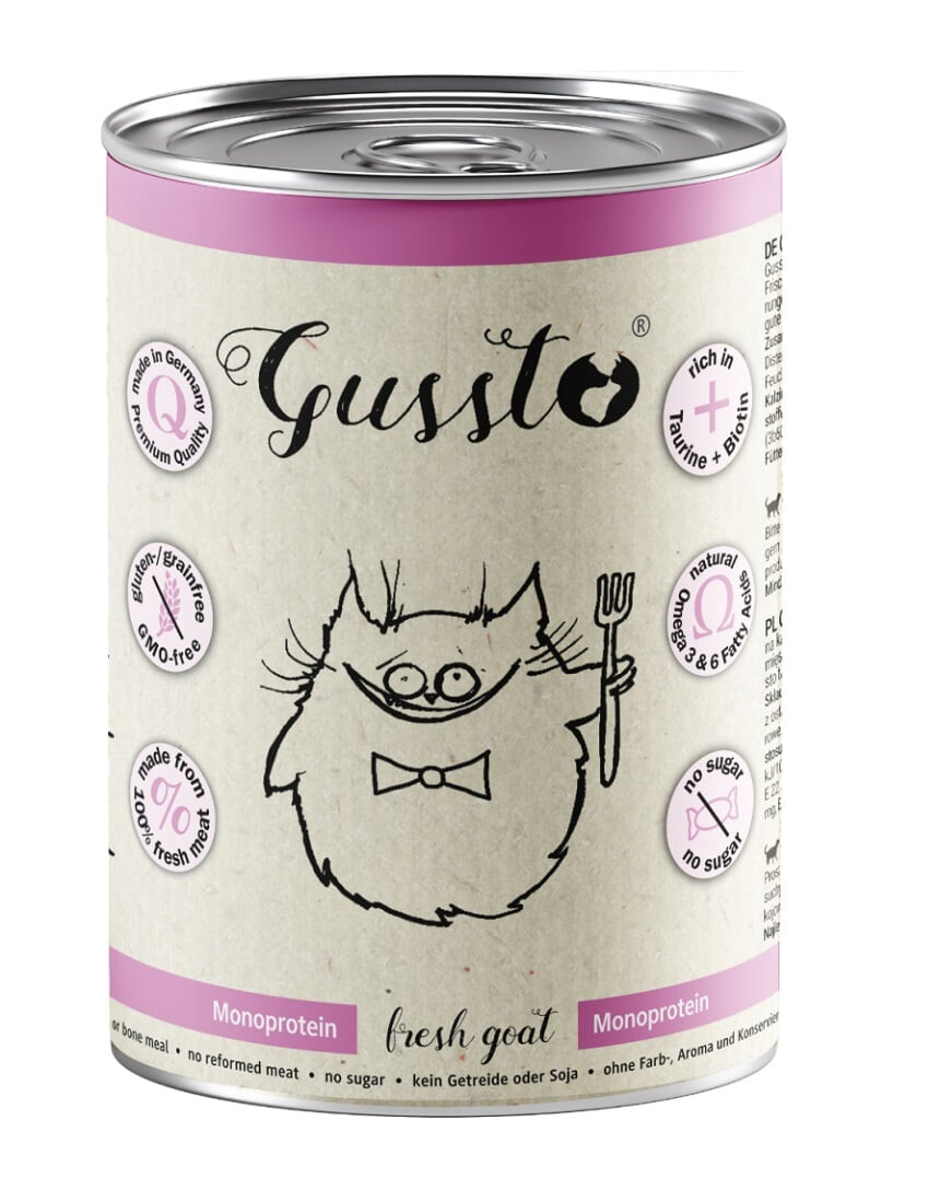 Gussto Fresh Goat je výnimočné super prémiové krmivo, vyvinuté s cieľom zabezpečiť mačkám najvyššiu úroveň výživy. Receptúra je založená na 100% čerstvom mäse kozy triedy human grade, čo zaručuje vysokú nutričnú hodnotu, vynikajúcu chuť a bezpečnosť používania aj u najnáročnejších mačiek.
