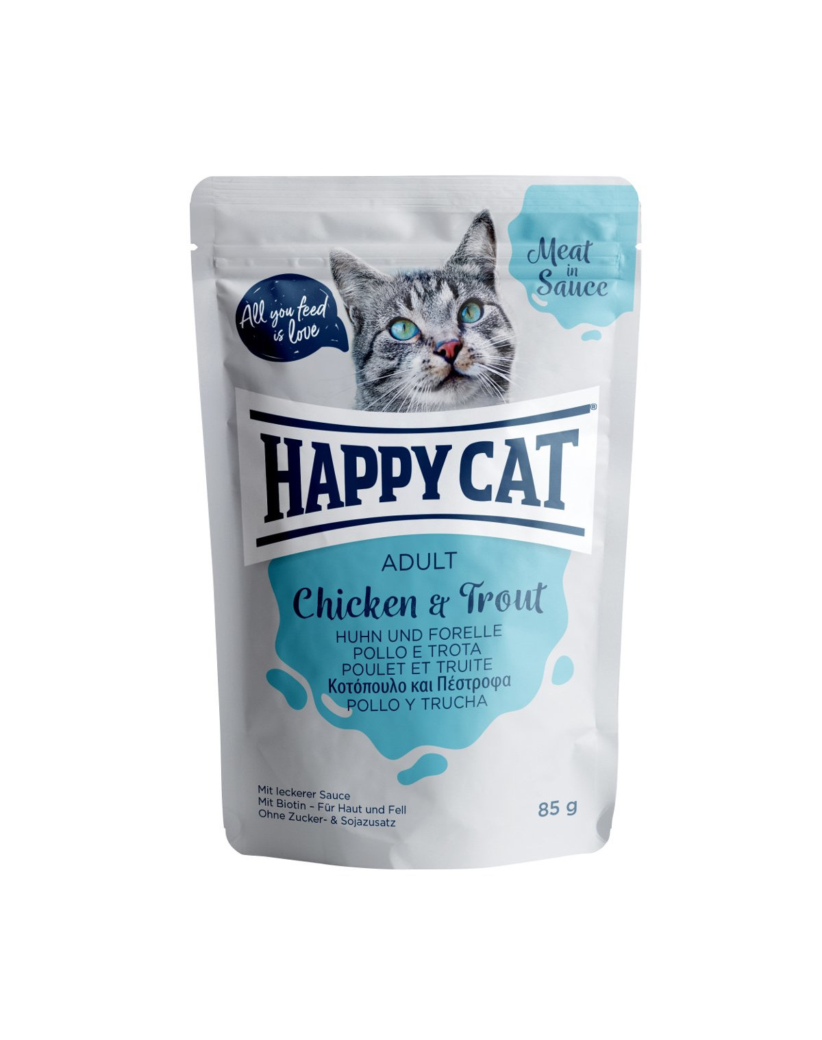 Kompletné krmivo pre dospelé mačky s kuracím mäsom a pstruhom.