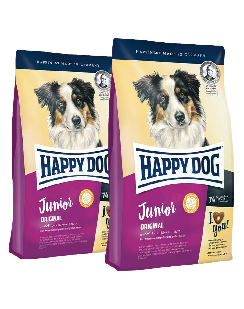 Happy Dog Junior Grainfree má perfektne prispôsobený obsah energie a proteínov (bielkovín) pre veľmi citlivé mladé psy v 2. rastovej fáze. Špeciálna receptúra bez obilia ponúka pestrosť 5 výberových zdrojov živočíšnych proteínov tej najvyššej kvality, bezlepkové zemiaky a cenné novozélandské mušle a tiež optimálny pomer proteínov a tuku. Poskytuje tak vyváženú výživu a stará sa o optimálny vývoj aj u veľmi citlivých šteniat. Jedinečné granule v tvare srdiečka s otvorom sú vďaka väčšiemu povrchu ľahšie stráviteľné.