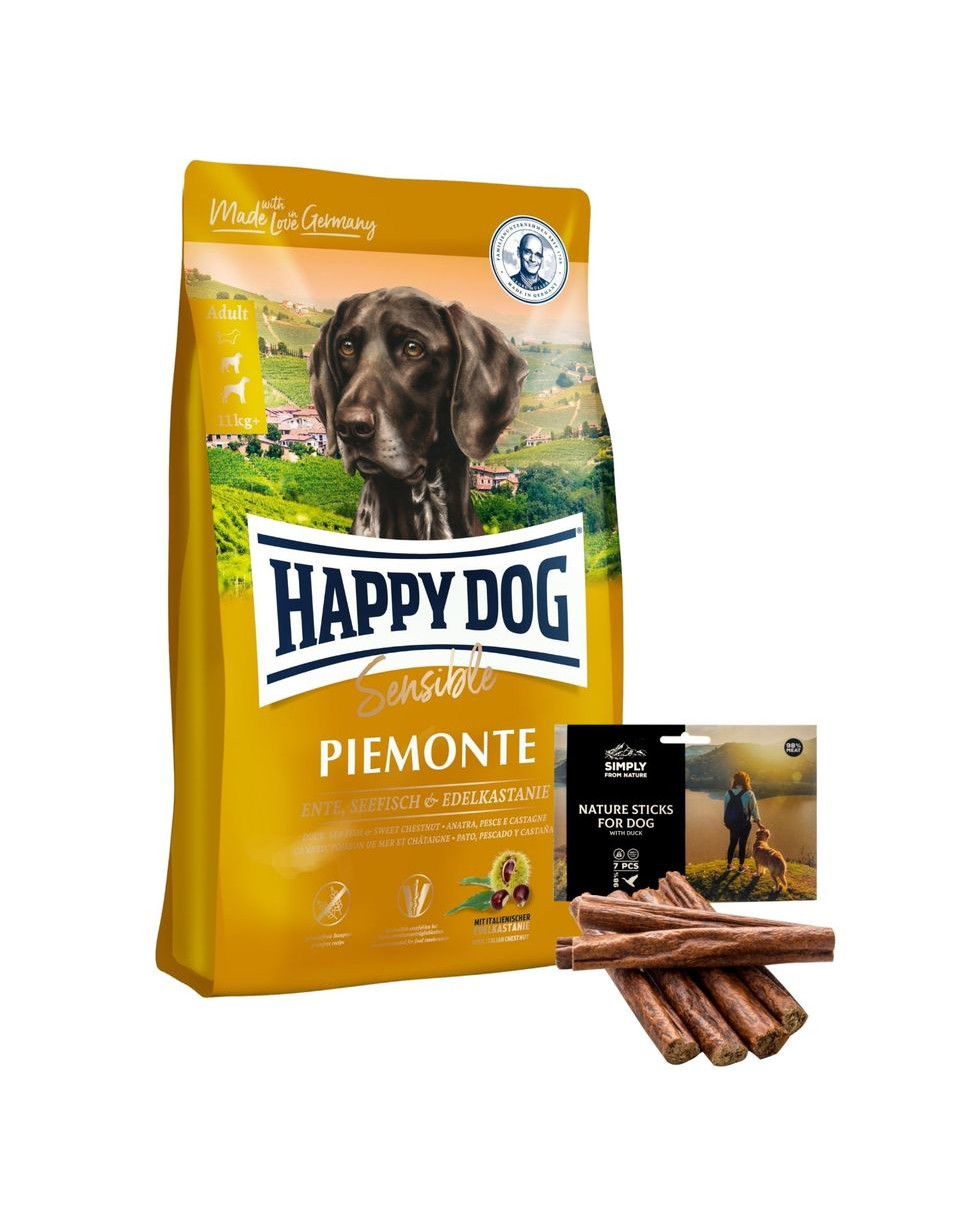 Ľahko stráviteľná kačica, chutné oceánske ryby, bezlepkové jedlé gaštany a jedinečný Happy Dog Natural Life Concept® tvorí zmysluplný základ tejto exkluzívnej receptúry. Tieto starostlivo vybrané komponenty a veľmi šetrný proces výroby robia z Happy Dog Piemonte ideálne krmivo pre uvedomelou výživu. Krmivo je preto vhodné aj pre psov so špeciálnymi požiadavkami. Granule sú optimálne prispôsobené pre chrup všetkých stredných a veľkých plemien psov nad 10 kg dospelej hmotnosti.
