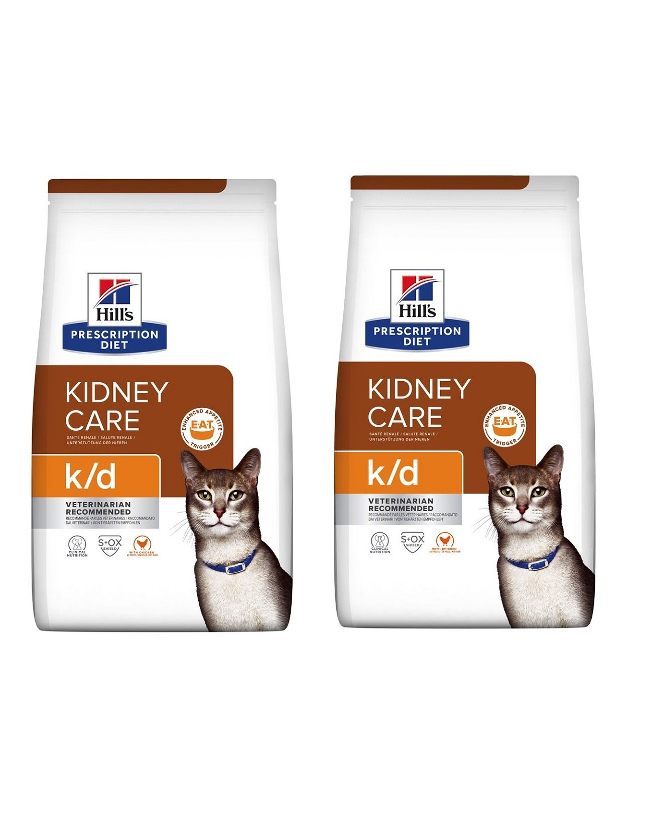 Krmivo pre mačky PRESCRIPTION DIET k/d značky Hill's je klinická výživa, ktorá pomáha chrániť životne dôležité funkcie obličiek vašej mačky, zlepšuje jej chuť do jedla a zvyšuje príjem potravy. Zloženie s ActivBiome+ Kidney Defense, patentovanou zmesou prebiotík, ktorá vyživuje črevný mikrobióm a pomáha podporovať funkciu obličiek. Táto výživa stimuluje chuť do jedla a klinicky preukázateľne zlepšuje a predlžuje kvalitu života. Krmivo PRESCRIPTION DIET k/d je vyrobené z kuracieho mäsa a má lahodnú chuť, ktorú si vaša mačka obľúbi. Keď majú mačky poškodené obličkové tkanivá, ani ich obličky nemôžu dobre fungovať. Tento stav sa nedá zvrátiť, ale jeho progresia sa môže spomaliť. U mačiek trpiacich zníženou funkciou obličiek môže dôjsť k strate chuti do jedla a môže klesnúť ich príjem potravy. Dietetické krmivá pre ochorenia obličiek sú navrhnuté tak, aby pomáhali znižovať zaťaženie obličiek a umožňovali im tak efektívnejšie fungovanie. Je dôležité pokračovať v kŕmení krmivom pre mačky PRESCRIPTION DIET k/d Kidney Care, ktoré vám pomôže udržať zdravie obličiek vašej mačky, a to aj po zlepšení príznakov obličiek. Požiadajte vášho veterinára o ďalšie informácie o tom, ako môžu krmivá PRESCRIPTION DIET pomôcť domácim zvieratám, aby si naďalej užívali šťastný a aktívny život. Výživa s vynikajúcou chuťou, ktorá pomáha zmeniť život vášho domáceho zvieraťa. Pretože sú od vás závislé, snažíme sa poskytovať to najlepšie krmivo, ako je len v ľudských silách možné. Vďaka zloženiam založeným na vedeckých poznatkoch, ktoré uspokoja jedinečné zdravotné potreby vašej mačky, je krmivo pre mačky PRESCRIPTION DIET cielenou výživou, ktorú potrebujú pre dlhý a šťastný život. Naše krmivá pre domáce zvieratá vyrábame z tých najkvalitnejších surovín. Tieto suroviny musia spĺňať naše prísne požiadavky na čistotu a obsah živín. Zmeňte život zvierat v útulkoch. Každým nákupom krmív pre domáce zvieratá PRESCRIPTION DIET pomôžete každý deň nakŕmiť viac ako 100 000 zvierat bez domova, a to 365 dní v roku. Zistite viac na webovej lokalite hillsfoodshelterlove.com. Krmivo pre mačky PRESCRIPTION DIET značky Hill's je k dispozícii v rôznych suchých krmivách, ktoré vyhovujú jedinečným potrebám vašej mačky a mokrých krmivách s mnohými lahodnými príchuťami, ktoré si vaša mačka obľúbi.