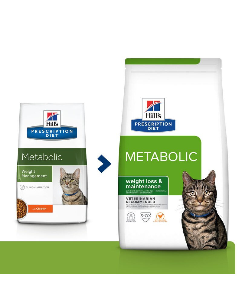 Krok smerom k ich najlepšiemu životu. Suché krmivo pre mačky s kuracím mäsom PRESCRIPTION DIET Metabolic Weight Management značky Hill‘s je klinicky overená výživa, ktorá pomáha mačkám prirodzene znížiť hmotnosť a následne si ju udržať.