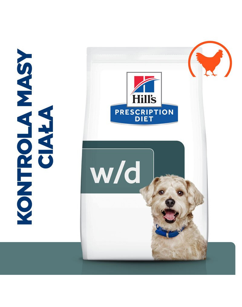 Krmivo PRESCRIPTION DIET w/d značky Hill‘s je špeciálne vyvinuté ako pomôcka pri liečbe cukrovky vášho psa. Vďaka nízkym hladinám cukrov a optimálnej zmesi rozpustných a nerozpustných vlákien pomáha krmivo w/d regulovať hladinu cukru v krvi a udržiavať zdravú hmotnosť. Krmivo PRESCRIPTION DIET w/d je vyrobené z kuracieho mäsa a má delikátnu chuť, ktorú si váš pes obľúbi. Je dôležité pokračovať v kŕmení krmivom pre psov PRESCRIPTION DIET w/d, ktoré vám pomôže zvládnuť cukrovku vášho psa, a to aj po zlepšení jej príznakov. Požiadajte vášho veterinára o ďalšie informácie o tom, ako môžu krmivá PRESCRIPTION DIET pomôcť domácim zvieratám, aby si naďalej užívali šťastný a aktívny život. Výživa s vynikajúcou chuťou, ktorá pomáha zmeniť život vášho domáceho zvieraťa. Pretože sú od vás závislé, snažíme sa poskytovať to najlepšie krmivo, ako je len v ľudských silách možné. Vďaka zloženiam založeným na vedeckých poznatkoch, ktoré uspokoja jedinečné zdravotné potreby vášho psa, je krmivo pre psov PRESCRIPTION DIET cielenou výživou, ktorú potrebujú pre dlhý a šťastný život. Naše krmivá pre domáce zvieratá vyrábame z tých najkvalitnejších surovín. Tieto suroviny musia spĺňať naše prísne požiadavky na čistotu a obsah živín. Zmeňte život zvierat v útulkoch. Každým nákupom krmív pre domáce zvieratá PRESCRIPTION DIET značky Hill´s pomôžete každý deň nakŕmiť viac ako 100 000 zvierat bez domova, a to 365 dní v roku. Zistite viac na webovej lokalite hillsfoodshelterlove.com. Krmivo pre psov PRESCRIPTION DIET značky Hill’s je k dispozícii v rôznych suchých krmivách, ktoré vyhovujú jedinečným potrebám vášho psa a mokrých krmivách s mnohými lahodnými príchuťami, ktoré si váš pes obľúbi.