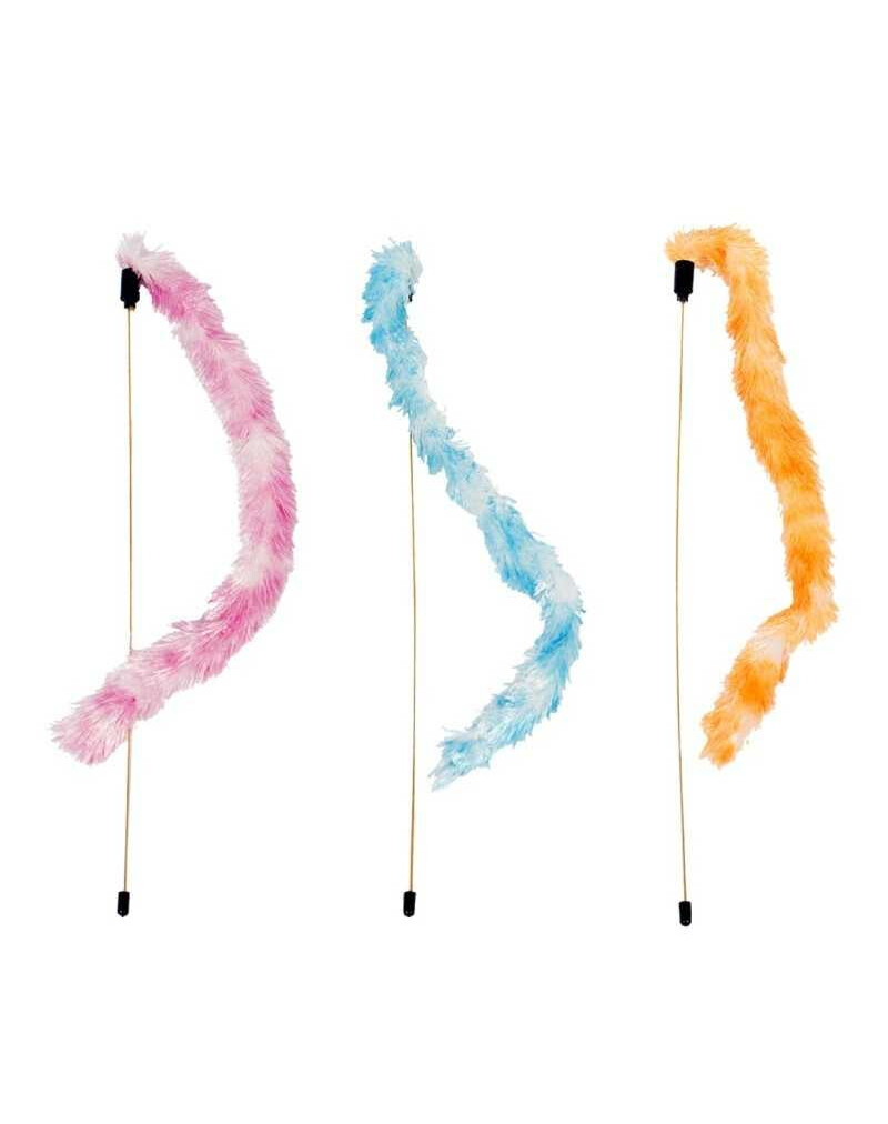 Rybárska prút pre mačku s dlhým, huňatým chvostom je ideálna hračka, ktorá podnecuje prirodzený inštinkt lovu, povzbudzuje k pohybu a spoločnej zábave s opatrovateľom. Ľahká, flexibilná tyč a mäkký, kožušinový chvost priťahujú pozornosť mačky a motivujú ju k skákaniu, chytaniu a naháňaniu.