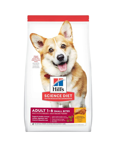 Suché krmivo Hill's Science Diet Small Bites Adult je špeciálne vyvinuté tak, aby uspokojilo energetické potreby psov na vrchole ich života. Lahodné krmivo s kuracou príchuťou pre tých, ktorí uprednostňujú rozmanitosť, vyrobené z kvalitných a ľahko stráviteľných surovín v malej veľkosti.