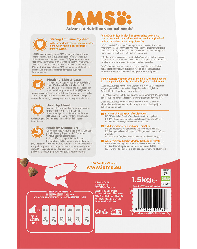 (35 %) Iams úplne pokrýva požiadavky mačiek na túto zložku potravy. Morka je