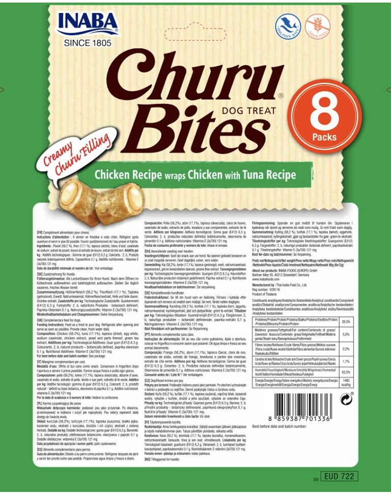 Jedinečné krémové pochúťky Churu Bites pre psov priamo z Japonska. Churu majú nízky obsah kalórií, neobsahujú obilniny ani konzervačné látky a sú vyrobené z mäsa z kurčiat chovaných vo voľnom výbehu, ktoré sú prirodzene chované na prísne kontrolovaných farmách, a z hlbokomorského tuniaka uloveného udržateľným spôsobom s certifikátom ochrany delfínov.