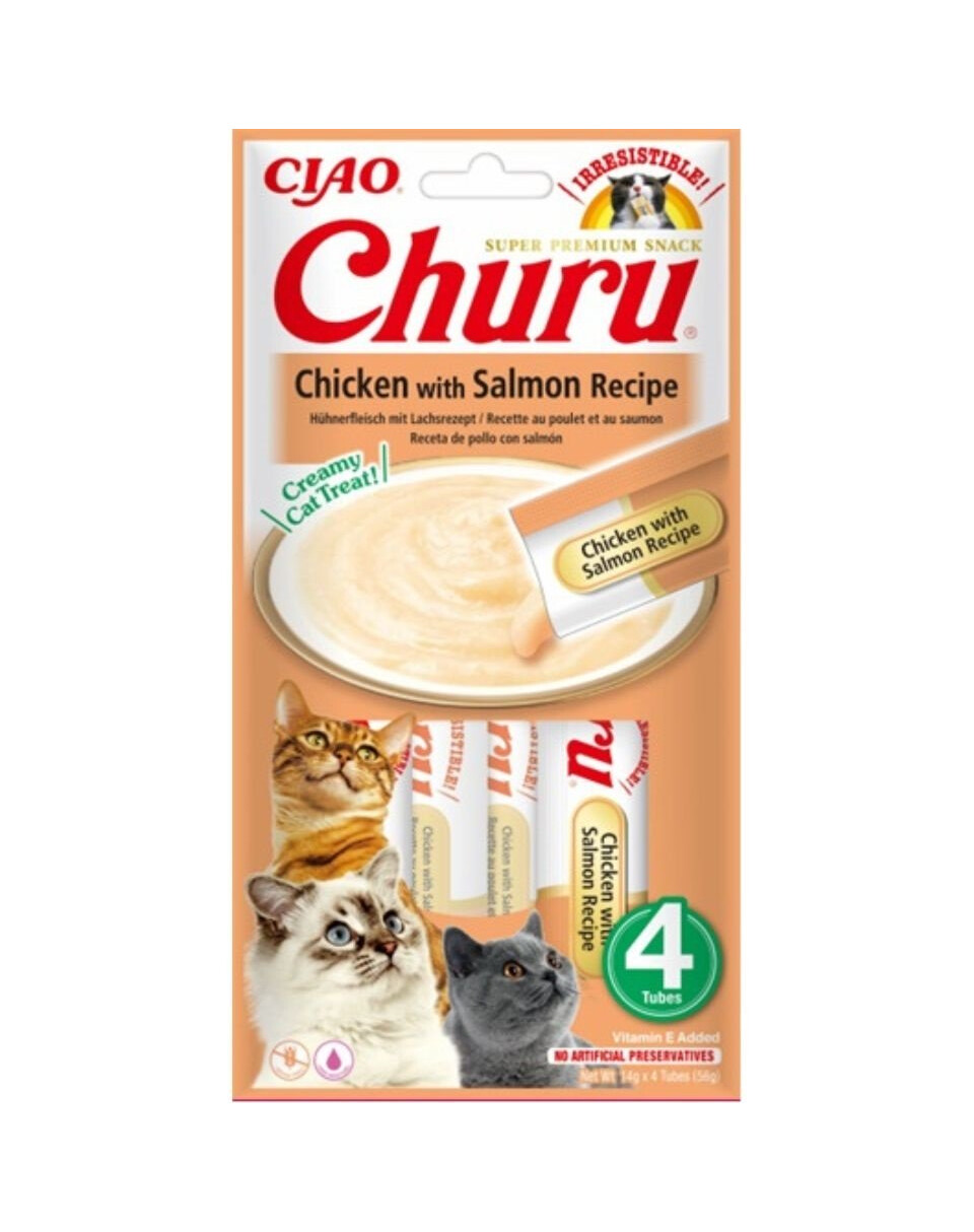 Churu Chicken with Salmon - krémová pochúťka pre mačky Churu s príchuťou kuracieho mäsa.