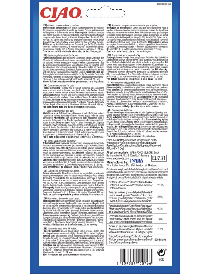 Vyrobené zo 100 % čistého a prírodného voľne chovaného kuracieho mäsa a divokého tuniaka. Každé balenie obsahuje štyri samostatné balíčky s pochúťkami, aby sa zachovala ich maximálna čerstvosť. Balenie je špeciálne navrhnuté tak, aby ste mohli svoju mačku kŕmiť z ruky, čím sa vaše puto ešte viac zblíži.