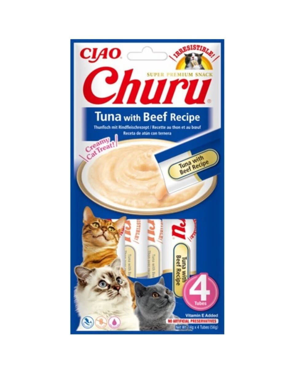Churu Tuna with Beef Recipe - krémové pochúťky pre mačky Churu s príchuťou tuniaka a hovädzieho mäsa
