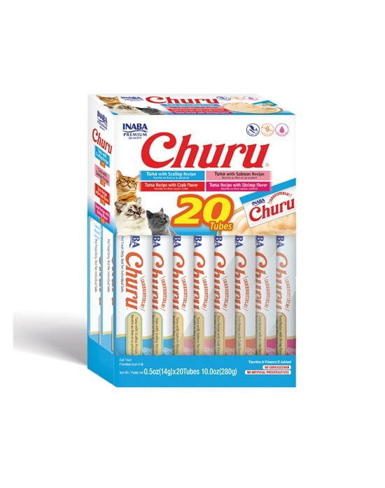 Balenie obsahuje 20 maškŕt:Neuveriteľne chutné a zdravé pochúťky vyrobené z najkvalitnejších "humánnych" surovín. Jedinečné krémové pochúťky Churu pre mačky priamo z Japonska. Churu majú nízky obsah kalórií, neobsahujú obilniny ani konzervačné látky a sú vyrobené z mäsa z voľne chovaných kurčiat prirodzene chovaných na prísne kontrolovaných farmách a z hlbokomorského tuniaka uloveného udržateľným a certifikovaným spôsobom, ktorý chráni delfíny.