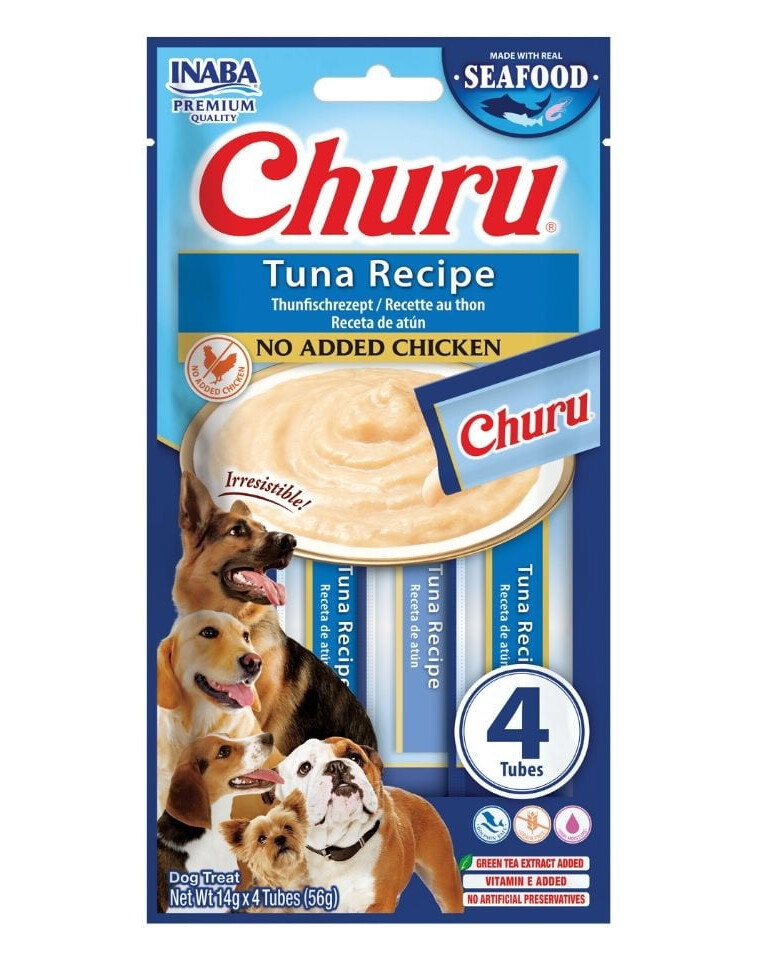 INABA Dog Churu je mimoriadne krémová, ľahká a nesmierne chutná maškrta v tubách s tuniakom, vytvorená s ohľadom na zdravé rozmaznávanie psov. Ich jemná konzistencia a výrazná rybia chuť robia z Churu obľúbenú maškrtu pre psov po celom svete — ako maškrtu, odmenu, tak aj prídavok k bežným jedlám.