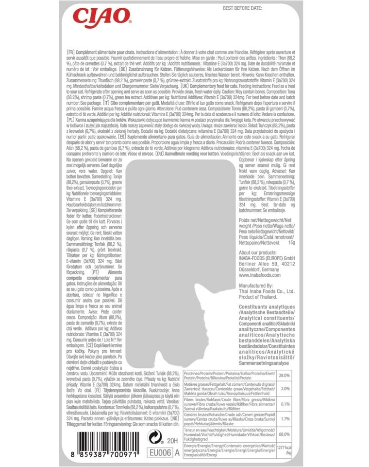 Maškrta pre mačky - Inaba Ciao Grilované filé z tuniaka v krevetovom vývare.