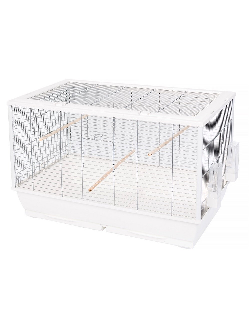 Klietka má hlbokú vaničku na podstielku a dve zásuvky, vďaka čomu sa ľahko čistí a umýva. Otvára sa zhora pre ľahký prístup k vtákom a zapínanie na západku poskytuje maximálnu bezpečnosť. Okrem toho sú na prednej a bočnej strane dvierka.
