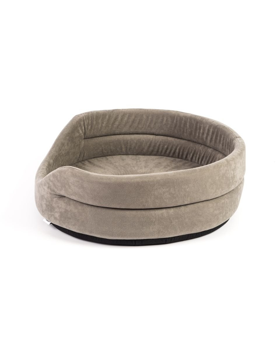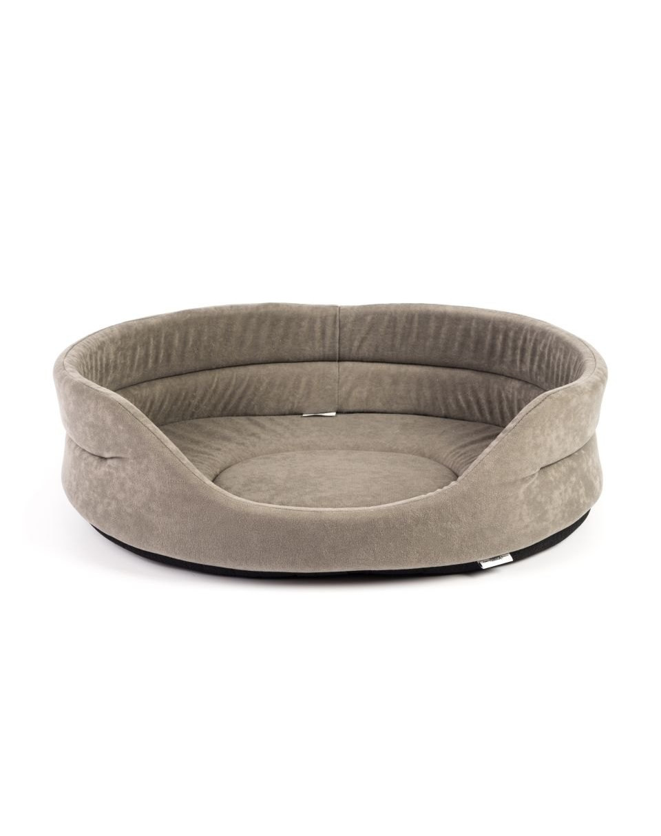 Je vyrobený z pevného, odolného a bezpečného materiálu pre zvieratá, ktorý zaisťuje dlhú životnosť pelechu. Šedý, zamatový materiál je pôsobivý a veľmi estetický. Vystužené boky zaručujú stabilitu pelechu a dávajú maznáčikom oporu. Umožňuje výnimočnú relaxáciu psa. Pelech je správne profilovaný a má široký vchod, čo zaisťuje pohodlný prístup pre psa.