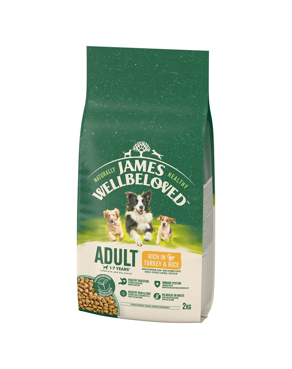 Receptúra tohto krmiva bola starostlivo vyvinutá tak, aby spĺňala požiadavky dospelých psov. Naše krmivo bohaté na morčacie mäso a ryžu obsahuje prírodné prebiotiká na podporu zdravého trávenia. Obsahuje vybrané prírodné zložky bez pridaných umelých aróm, farbív a antioxidantov. Do krmiva James Wellbeloved Adult sme pridali vitamíny a minerály, ktoré váš pes potrebuje, aby bol šťastný, zdravý a plný života.