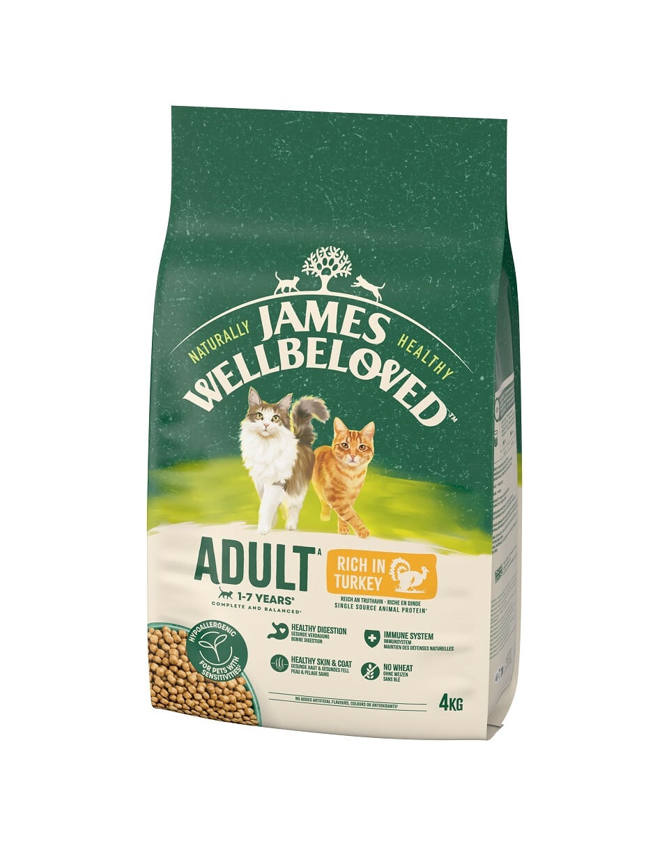 Naše krmivo bohaté na morčacie mäso obsahuje prírodné prebiotiká na podporu zdravého trávenia. Obsahuje vybrané prírodné zložky bez pridaných umelých aróm, farbív a antioxidantov. Do krmiva James Wellbeloved Adult sme pridali vitamíny a minerály, ktoré vaša mačka potrebuje, aby bola šťastná, zdravá a plná života.