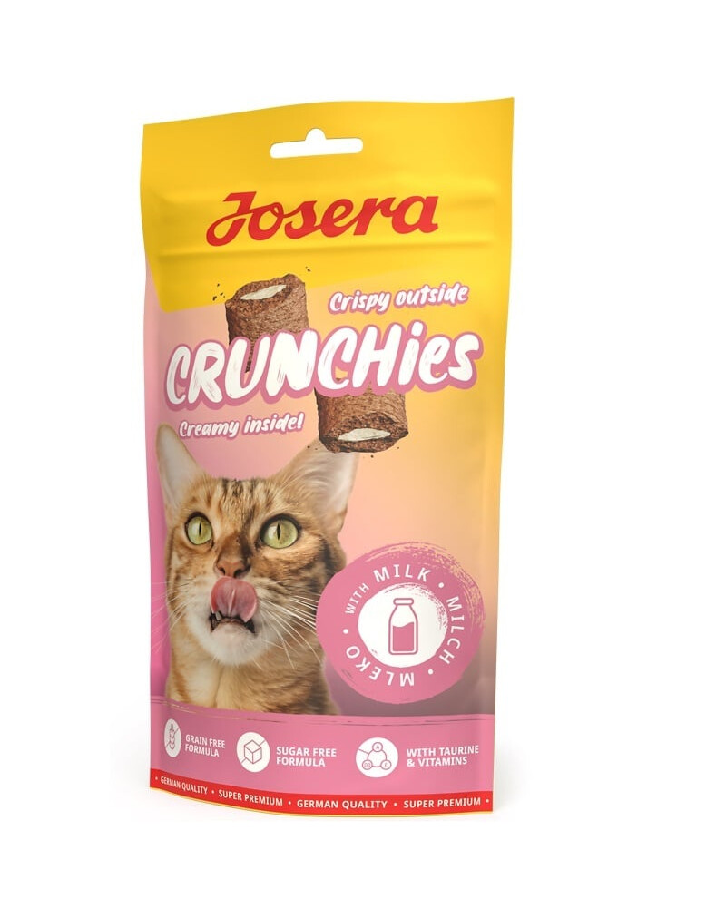 Niektoré veci sa nikdy nemenia: naše malé tigre šalejú pri pohľade na mlieko odkedy boli mačiatkami - a dnes sa môžu tešiť na Josera Crunchies with Milk! Bezobilninová a nízkokalorická receptúra maškŕt bola doladená do dokonalosti: v chrumkavej škrupinke sa nachádza krémová náplň, ktorú si zamiluje aj vaša mačka.