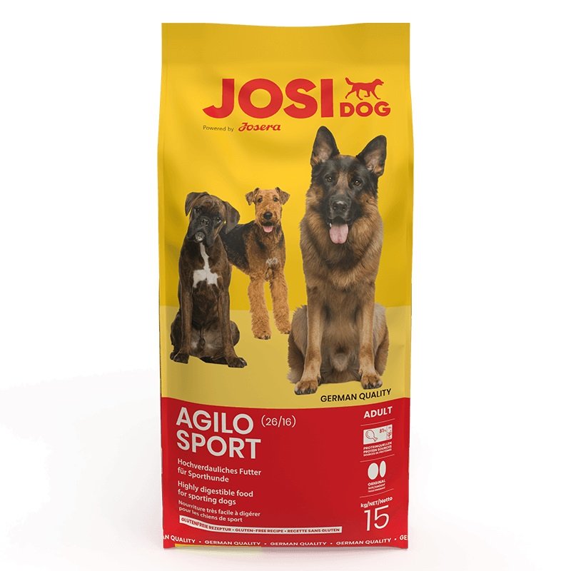 Kompletné krmivo pre veľmi aktívne dospelé psy JosiDog Agilo Sport. Táto receptúra bez obilnín je ľahko stráviteľná, a preto je vhodná pre psy s citlivejším trávením.