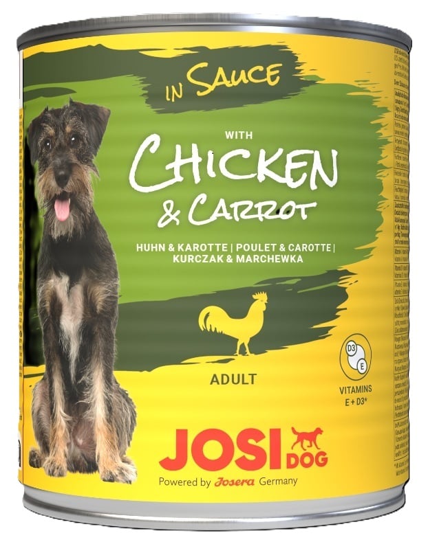 JosiDog Kuracie mäso a mrkva v omáčke – krmivo s kuracím mäsom a mrkvou pre dospelé psy.