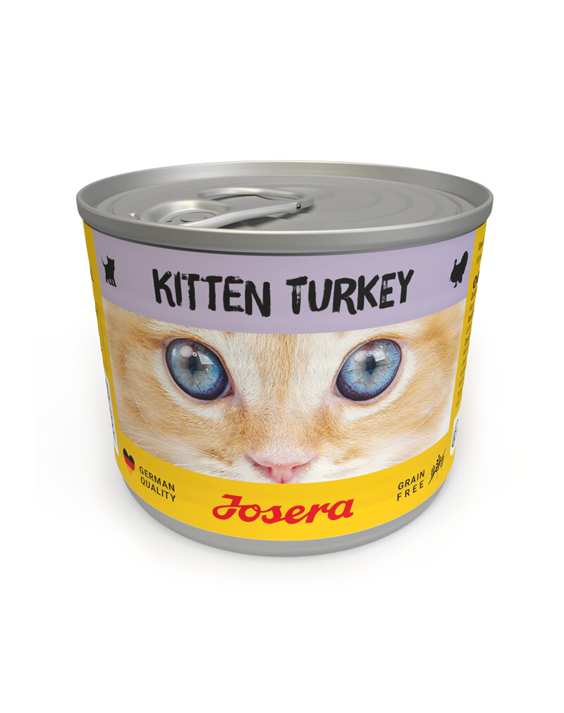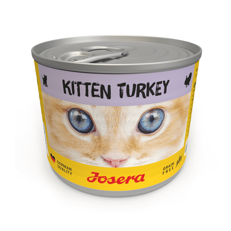 Dokonca aj tie najmenšie mačiatka vydávajú hlasné, hladné mňauky, keď sú kŕmené naším šťavnatým krmivom Josera Kitten Turkey! Niet divu, pretože táto šťavnatá pochúťka sa skladá zo 70 % morčacieho a kuracieho mäsa a lahodného hydinového vývaru. Receptúra bez obilnín poskytuje esenciálne omega-3 mastné kyseliny prostredníctvom lososového oleja a vďaka špeciálnej rastlinnej vláknine môže dokonca zabrániť zrážaniu krvi.
