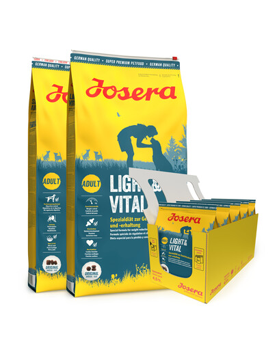 Krmivo Josera Light & Vital napomáhá starším a menej aktívnym psím jedincom redukovať hmotnosť a udržiavať ju v optimálnej hranici. Krmivo obsahuje menšie množstvo tuku oproti bežným krmivám a navodzuje rýchlejší pocit nasýtenia vďaka zvýšenému obsahu balastných látok a diétnej vlákniny. Receptúra krmiva je ľahká a veľmi lahodná a Váš pes tak bez akéhokoľvek utrpenia stratí nejaké to kilo naviac.