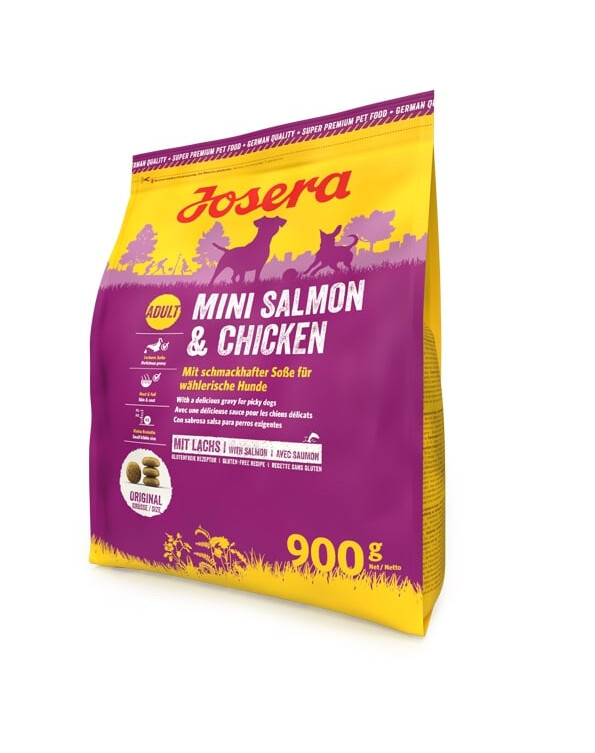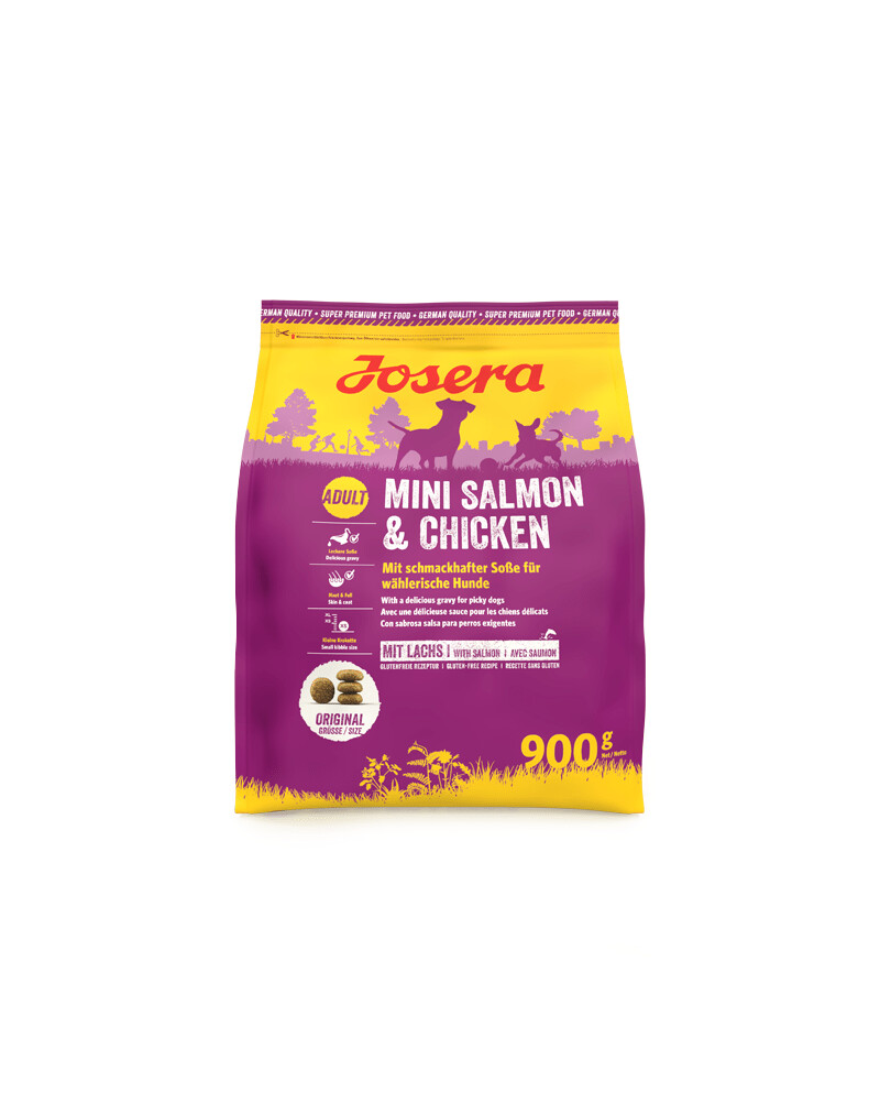 Ani naši malí štvornohí kamaráti neodmietajú chutné jedlo v miske - takže teraz môže byť niečo naozaj chutné: Josera Mini Losos a kura! Toto krmivo pre dospelých malých psov je mini verziou nášho obľúbeného suchého krmiva Festival - a aj ono je bezlepkové. Malé granule majú v sebe veľa chuti a omáčkový prášok premení suché krmivo na chutný mokrý pokrm. Lahodná receptúra s lososom je ako stvorená pre vyberavých psov, ktorí milujú rozmanitosť.