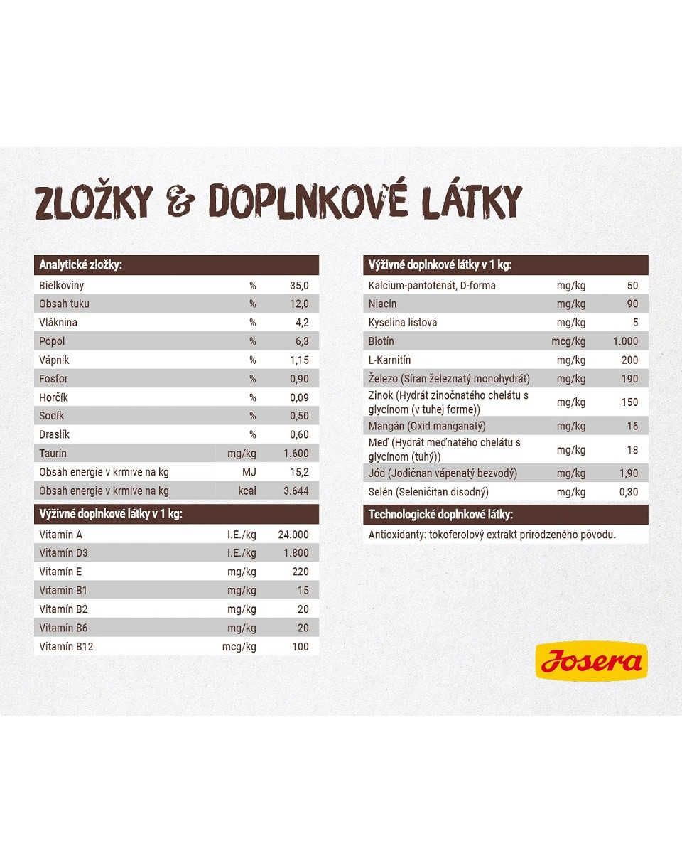 Sušené kuracie biele; hrachová múčka; sladké zemiaky; hydinový tuk; zemiakový proteín; sušená červená šošovica 6,0%; sušený pstruh 6,0%; repa; sušené zemiaky; rastlinné vlákno; minerály; tripolyfosfát sodný 0,33%; hydrolyzovaný rybí proteín; hydrolyzovaný živočíšny proteín; droždie; čakanka (prírodný zdroj inulínu)