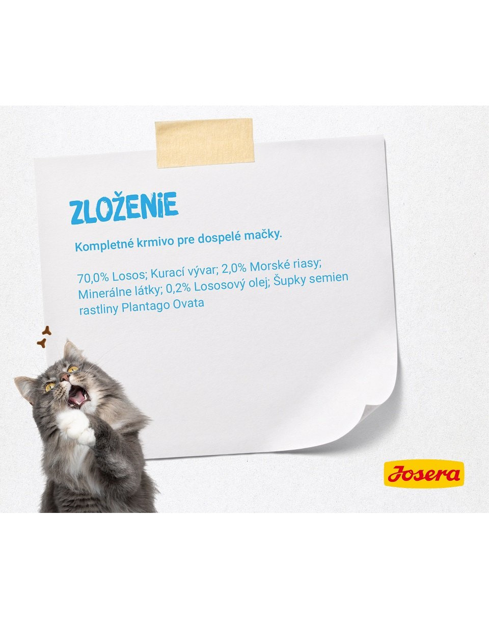 Losos 70%, kurací vývar, morská tráva 2%, minerálne látky,