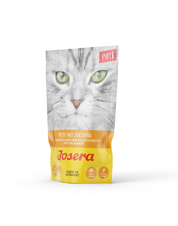 Forma paštéty potešia aj tie najnáročnejšie mačky. Základom jedla je morčacie a kuracie mäso, s prídavkom vnútorností a cukety.