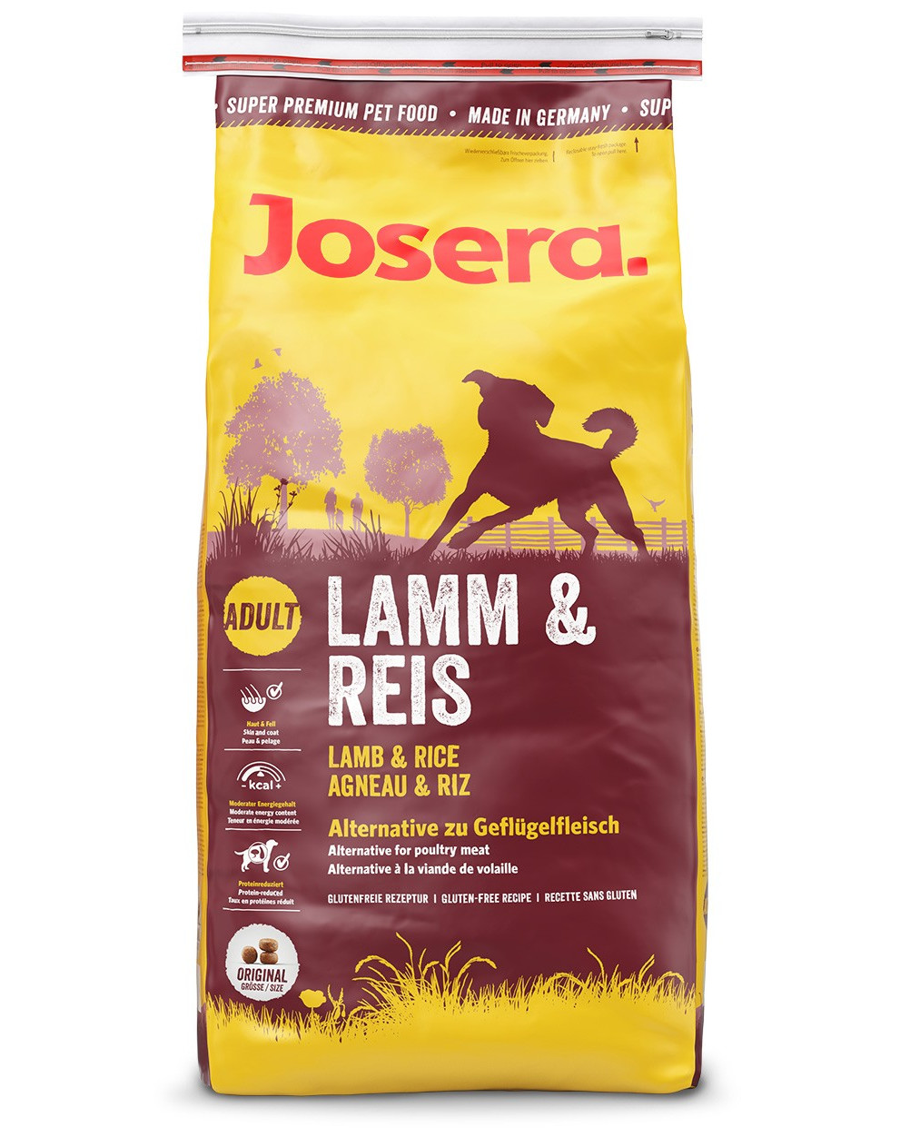 Složení: jehněčí moučka 25,0%, rýže 25,0%, celozrnná kukuřice, řepné řízky, drůbeží tuk, hrachový škrob, kvasnice, kukuřičný protein-glutan, minerální látky, svatojánský chléb sušený.