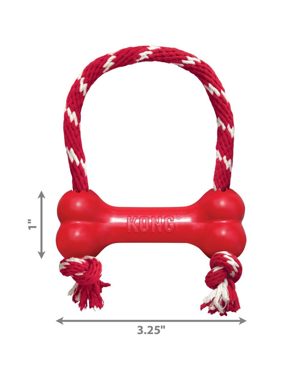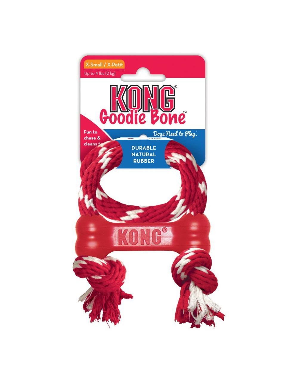 Hračka pre psov KONG Goodie bone s lanom pre psov je vyrobená zo špeciálnej veľmi elastickej a odolnej gumy. Hračky KONG sú po celom svete známe ako jedny z najodolnejších hračiek a sú teda vhodné aj pre psov "ničiteľov". Doplnením o lano získava táto hračka pre psa nový rozmer zábavy pri hádzaní a aportovaní.