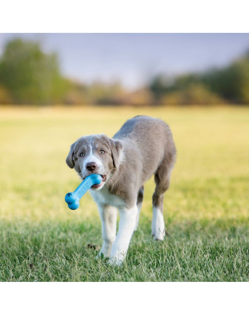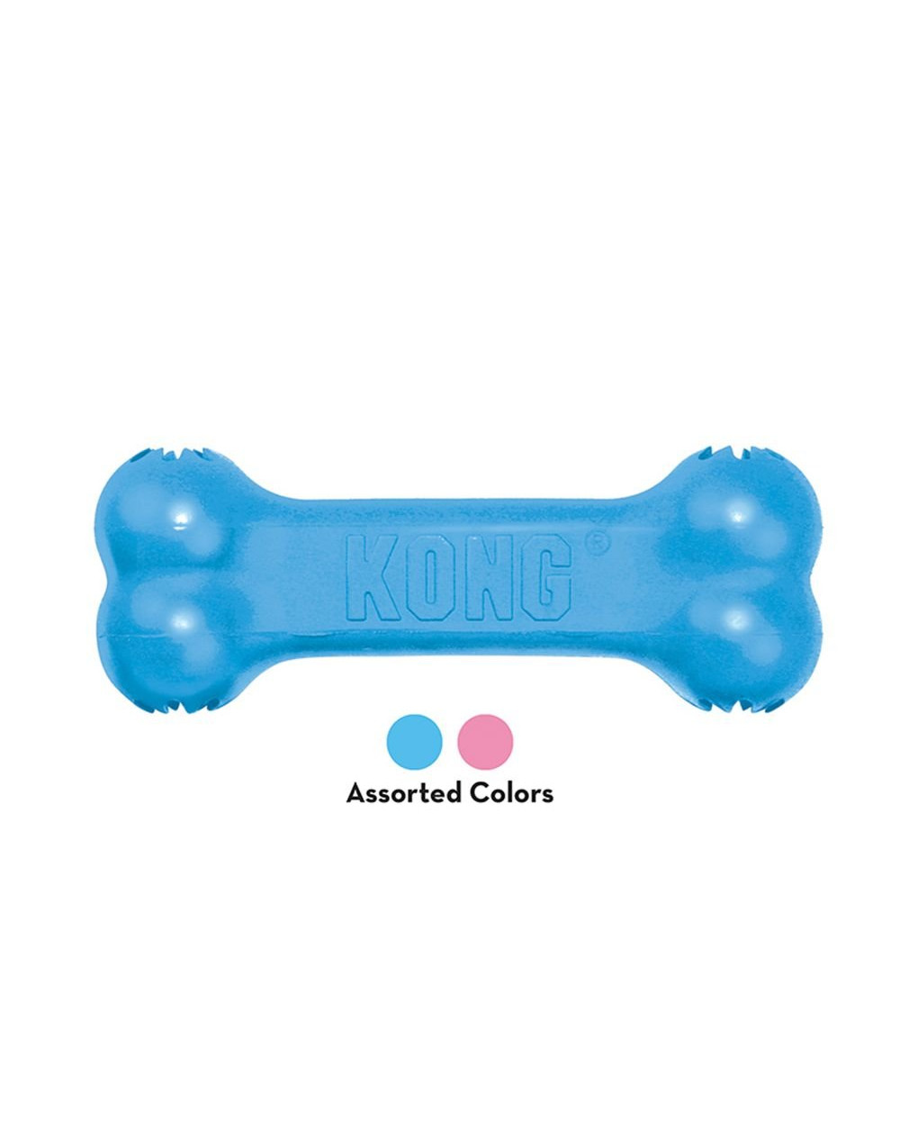 Klasická hračka KONG. Vyrobené z odolného materiálu, ideálne k naplneniu maškrty. Podporuje žuvanie šteniat a masíruje boľavé ďasná. Hračku možno umyť v umývačke.