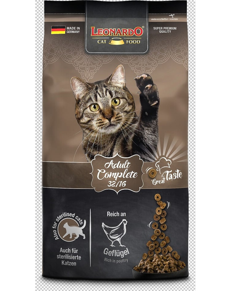 LEONARDO Adult Complete 32/16 je suché krmivo pre dospelé mačky (od 1 roka) s nízkou úrovňou aktivity.