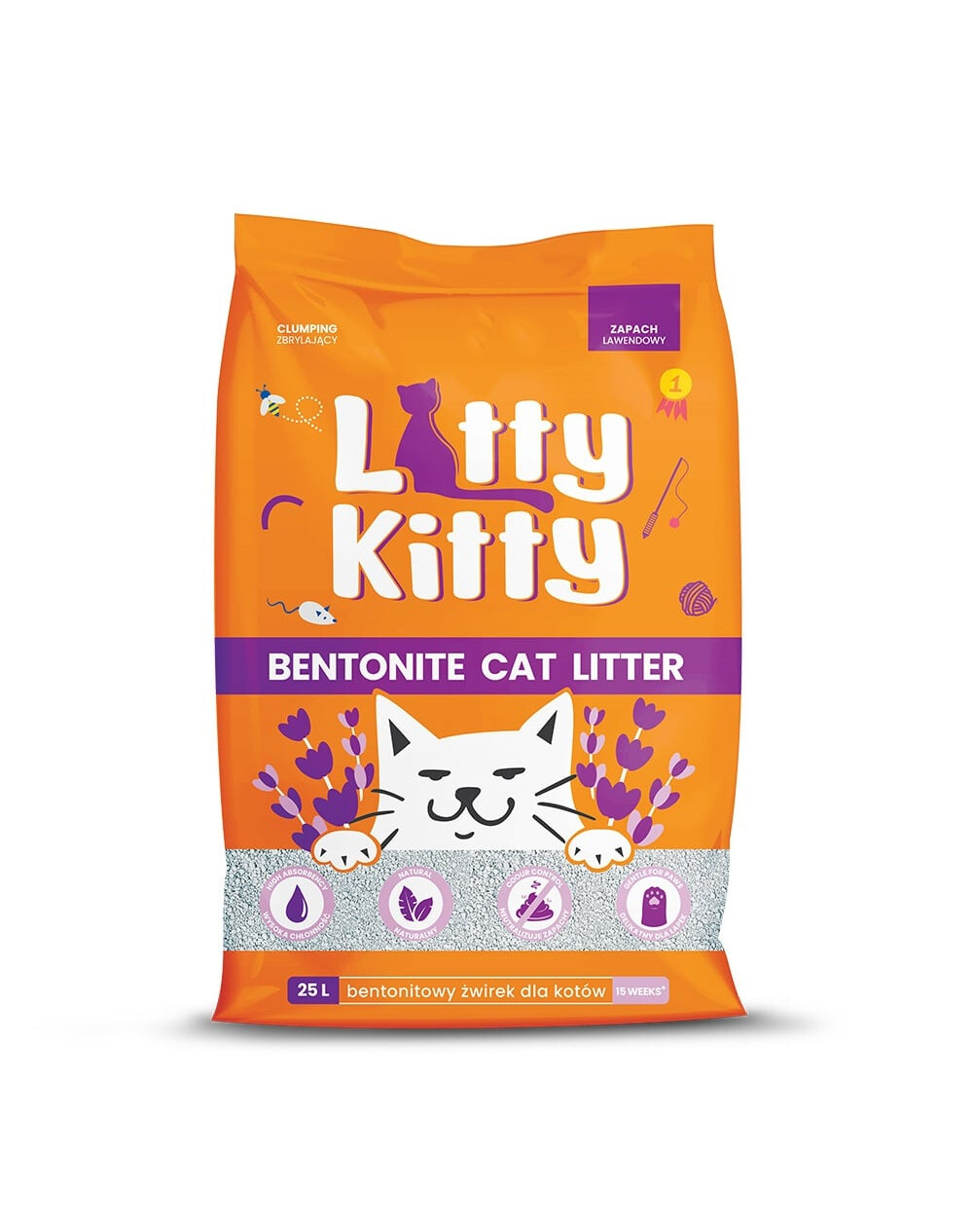 Bentonit Litty Kitty je účinná a absorpčná prírodná hlinená podstielka, ktorá sa po navlhčení zhlukuje do ľahko odstrániteľných hrudiek - jedno balenie vydrží až 6 týždňov používania*.