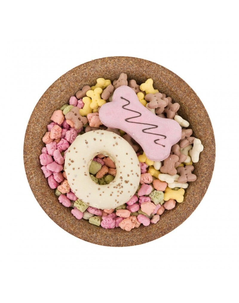 Súprava obsahuje: vanilkový šišiak, mini koláčik s lesným ovocím, mini sušienky zo zeleninovej zmesi, mini sušienky zo zmesi v tvare kosti.