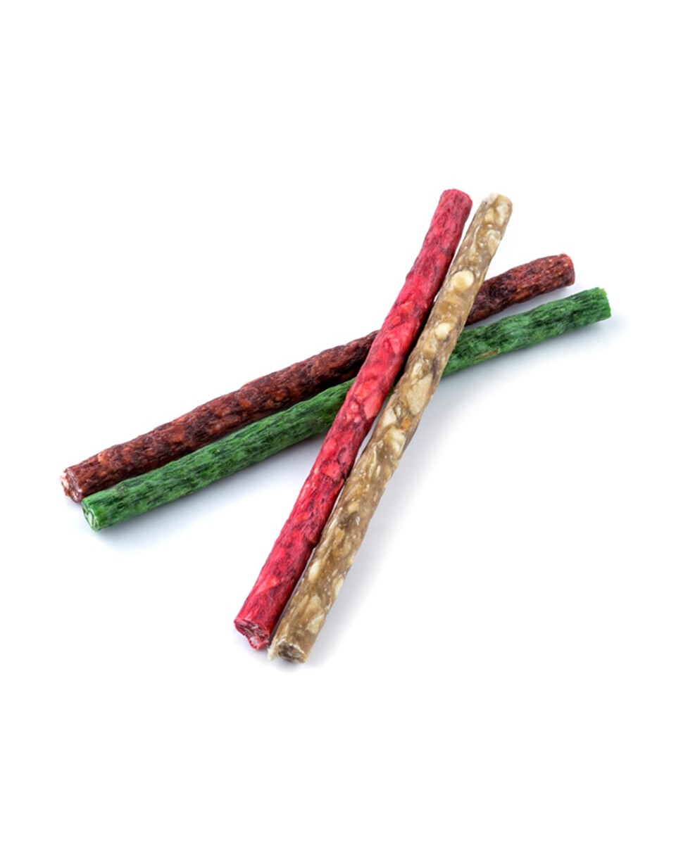 Žuvacie klobásky sú doplnkovým jedlom pripraveným zo surového mletého hovädzieho mäsa. Vďaka vysokému obsahu surových bielkovín sú tyčinky nielen zdravé, ale aj veľmi chutné. Výhodou tyčiniek je ich úloha v zubnej starostlivosti.