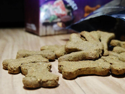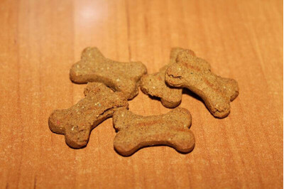 "Moje psy boli veľmi nadšené už po zjedení jednej sušienky! Bolo vidieť, že sa im veľmi páčili. Nespôsobujú alergie, ale prinášajú veľa radosti do papuľky nášho domáceho miláčika! V mojom prípade sa používali ako odmena počas tréningu. Môžete ich použiť aj ako popoludňajšiu desiatu pre svojho psa. Dajú sa rozdeliť na menšie kúsky (na obrázku je porovnanie sušienky a päťlibrovky)."