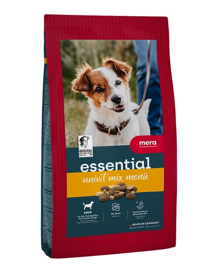 MERA Essential Univit Mix Menu je perfektnou voľbou pre dospelých psov všetkých plemien s normálnou úrovňou aktivity. Vytvorené podľa overených rodinných receptov, kombinuje vysokú chutnosť, zdravé zložky a plnú dennú nutričnú hodnotu.