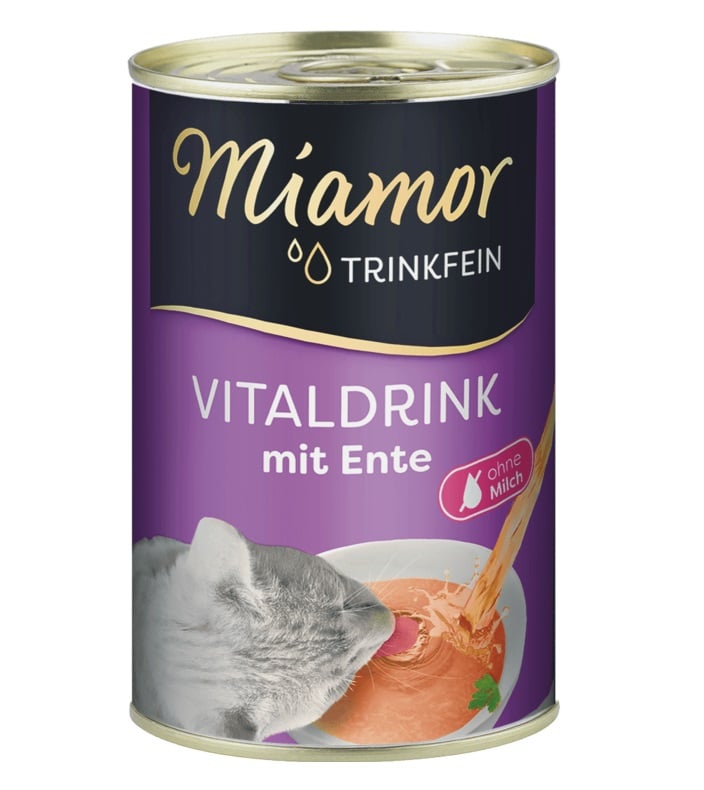 Polievka s kačacím mäsom pre mačky motivuje mačky, aby pili viac tekutín. Mačky zvyknú piť menej, pretože preferujú získať tekutiny cez jedlo. Ak nepijú dostatok tekutín, tak sú náchylnejšie na tvorbu močových kameňov (to platí najmä pre tie, ktoré jedia len suché krmivo). Miamor Trinkfein to podporuje svojou špeciálnou chuťou.