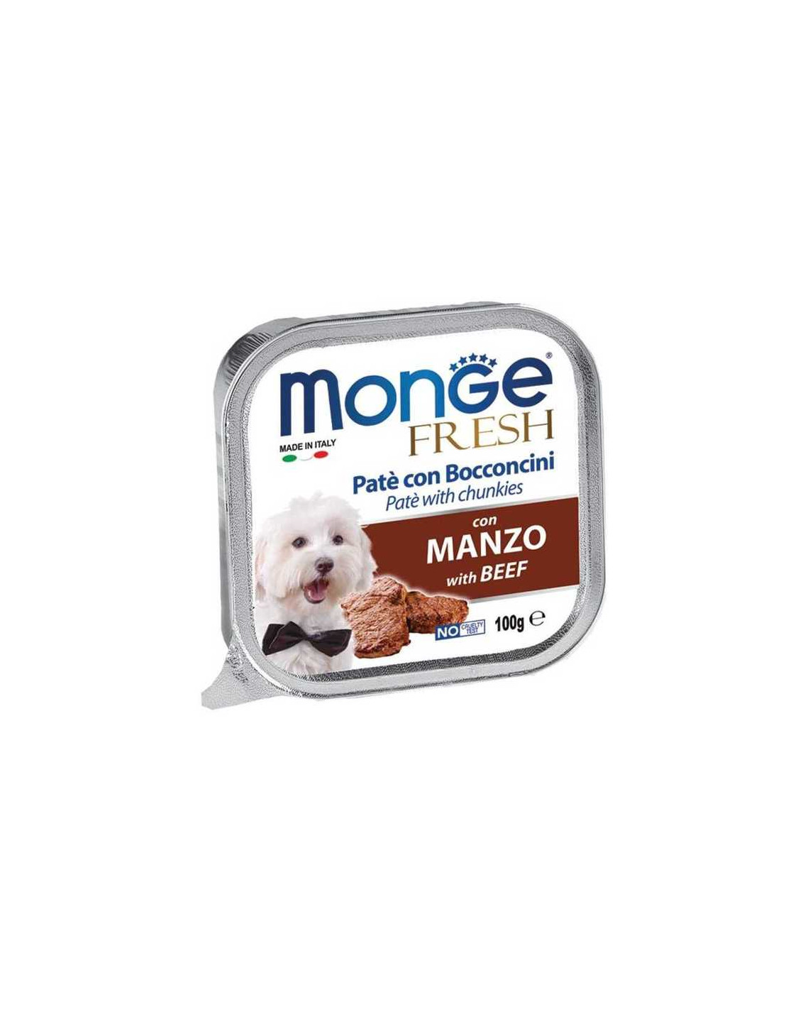 Monge FRESH sú lahodné paštéty s hmatateľnými kúskami, vytvorené podľa pôvodnej talianskej receptúry. 80% obsahu tvorí čerstvé mäso. Extrémne výživný s prídavkom čerstvého hovädzieho mäsa, bez farbív, konzervantov a trans -tukov.