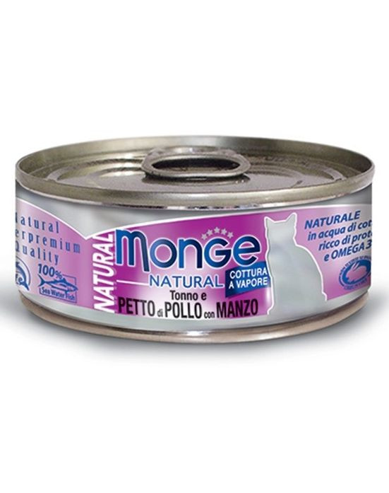 Produkt je doplnkovým krmivom pre mačky s lahodným tuniakom, kuracím a hovädzím mäsom vo vlastnej omáčke so všetkými vlastnosťami tých najkvalitnejších produktov: príchuť pochádza z čerstvých, najkvalitnejších surovín s vysokou nutričnou hodnotou, bohatých na kyseliny Omega 3 a bielkoviny a s nízkym obsahom tuku.