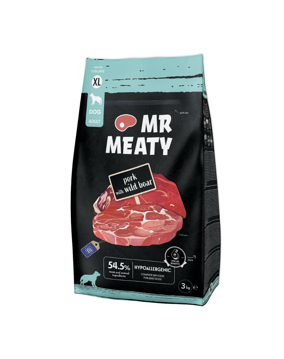 Spoznajte suché krmivo pre psov Mr Meaty. To, čo ju odlišuje od iných krmív, sú starostlivo vybrané zložky, šťavnaté poľské jablká, zdravá zelenina a cenné živiny, ktoré pomáhajú udržiavať psa v zdraví a dobrej kondícii. Naše receptúry boli vyvinuté odborníkmi, aby zabezpečili vášmu štvornohému priateľovi všetko, čo potrebuje. Váš pes si zaslúži to najlepšie.