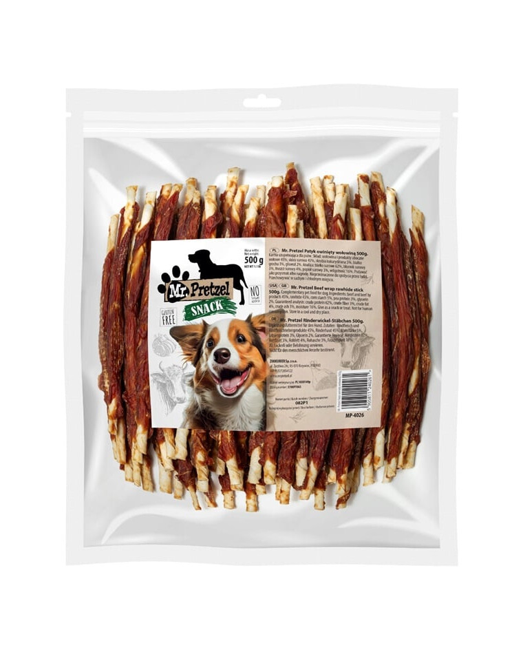 Prírodná tyčinka obalená hovädzím mäsom značky Mr. Pretzel je výnimočná prémiová pochúťka, ktorá spája vynikajúcu chuť s funkčnosťou.