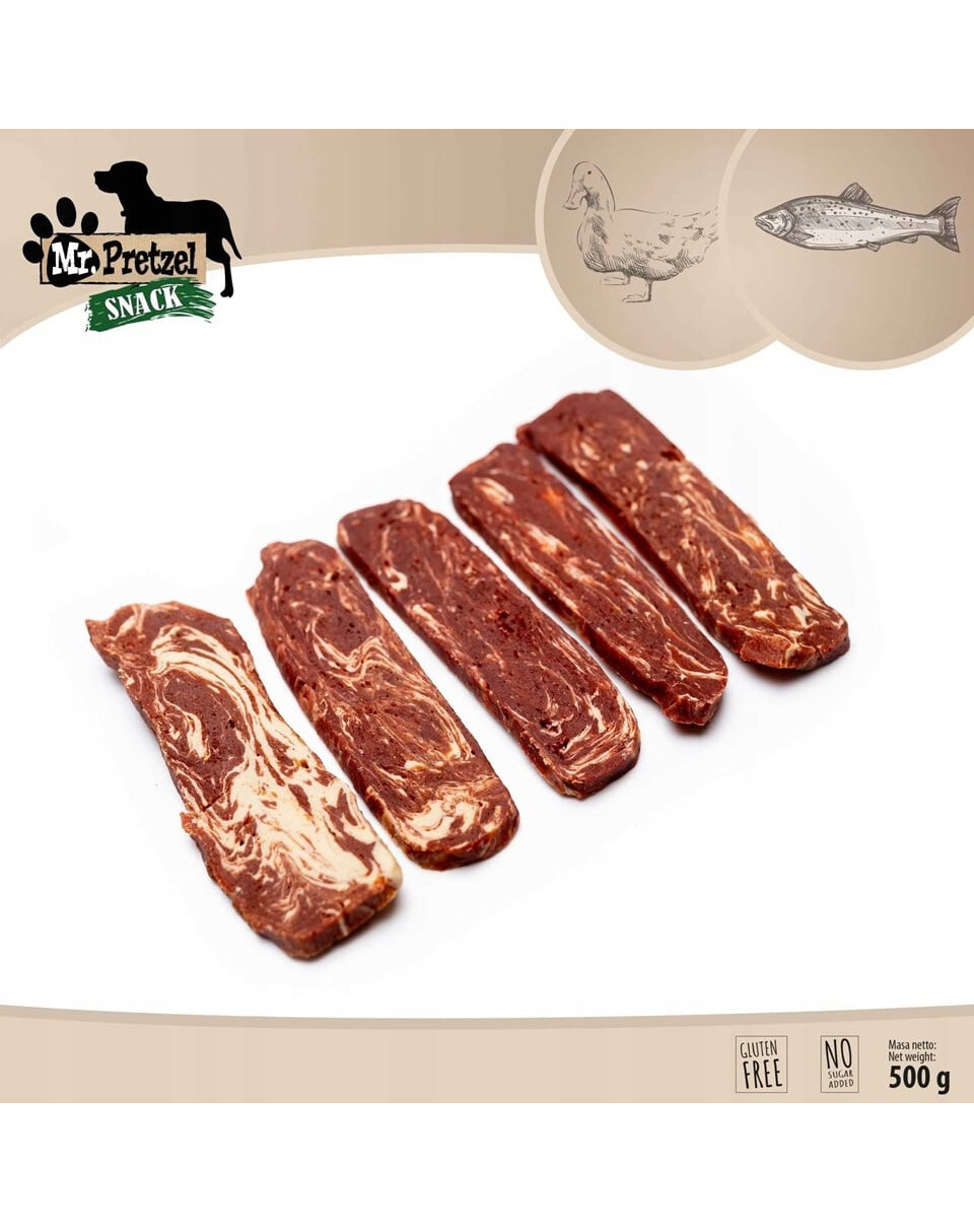 Mäkké filety z kačice značky Mr. Pretzel sú vysoko kvalitné maškrty pre psov, vytvorené s ohľadom na zdravie a radosť vášho miláčika.