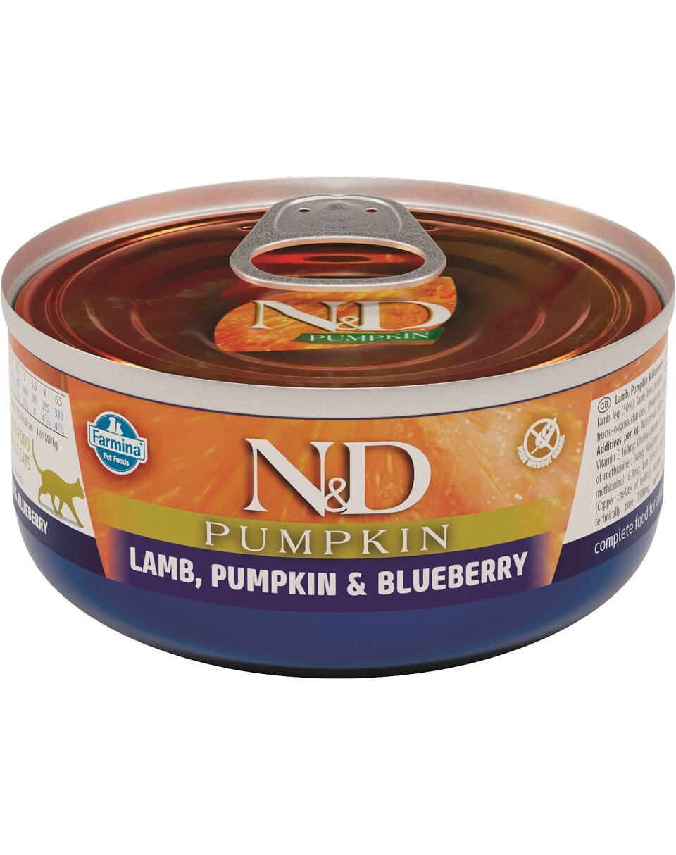Jahňa, tekvica, čučoriedka. Kompletné vlhké krmivo pre dospelé mačky.