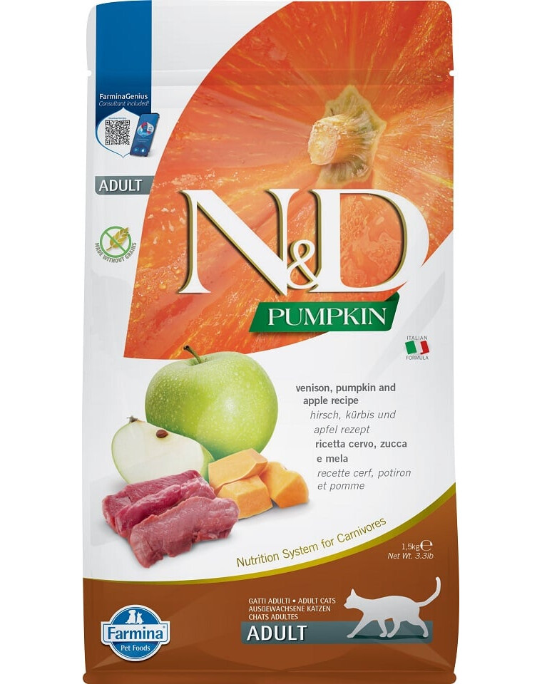 Rad N&D Pumpkin je Grain Free - bez obsahu obilnín, s vysokým podielom živočíšnej zložky (vyše 60 %) a tekvicou, zeleninou s výbornými nutričnými hodnotami.
