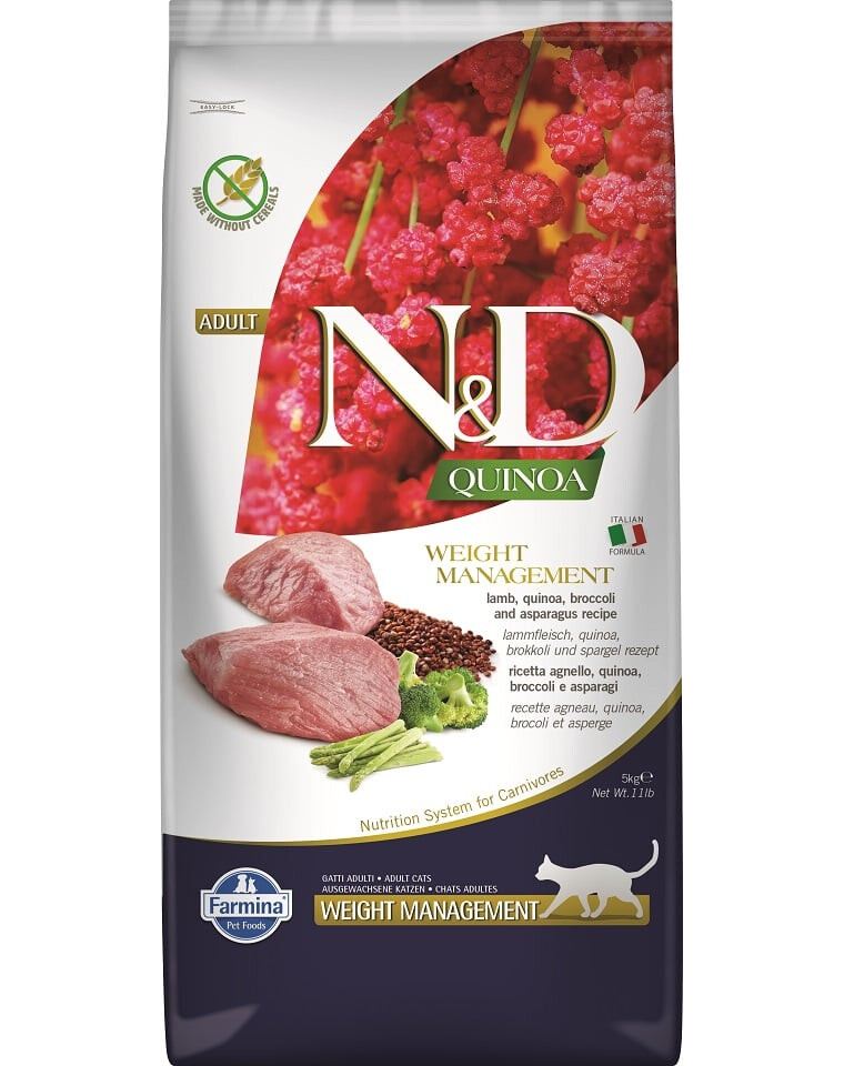 Kompletné bezobilné krmivo pre dospelé mačky s tendenciou k nadváhe s jahňacím, quinoa, brokolicou a špargľou.