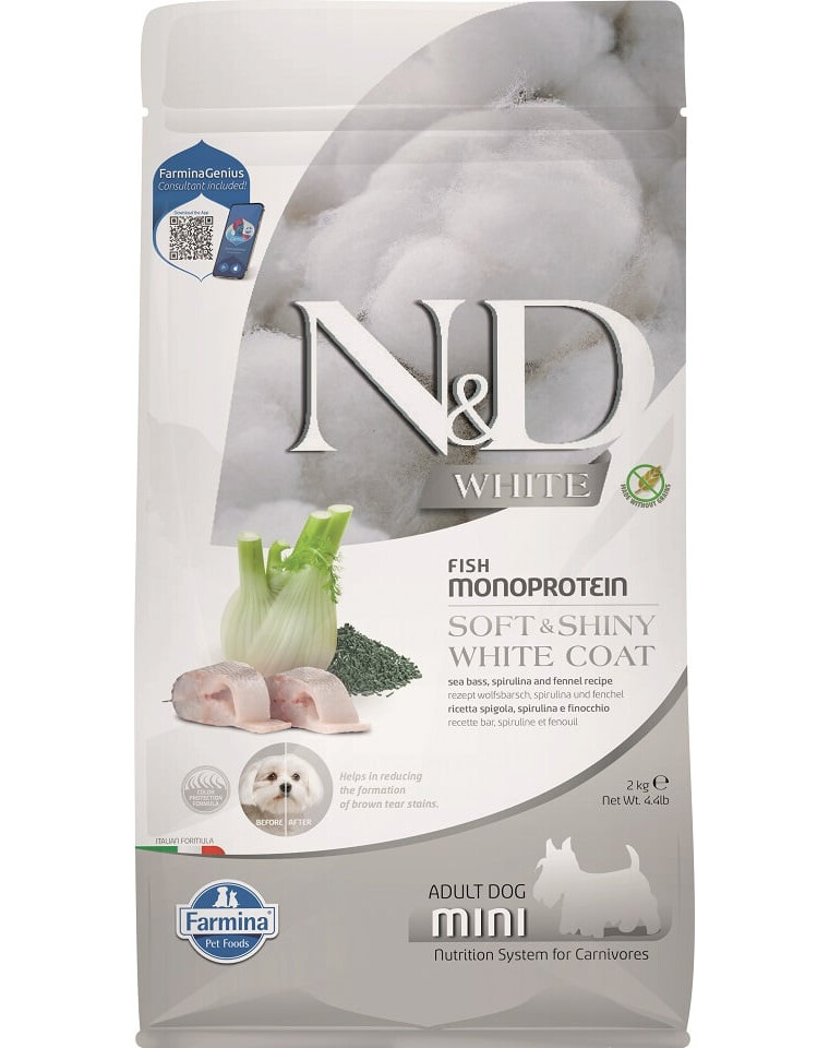 Kompletné krmivo pre dospelé psy malých plemien s morským vlkom, spirulinou a feniklom.