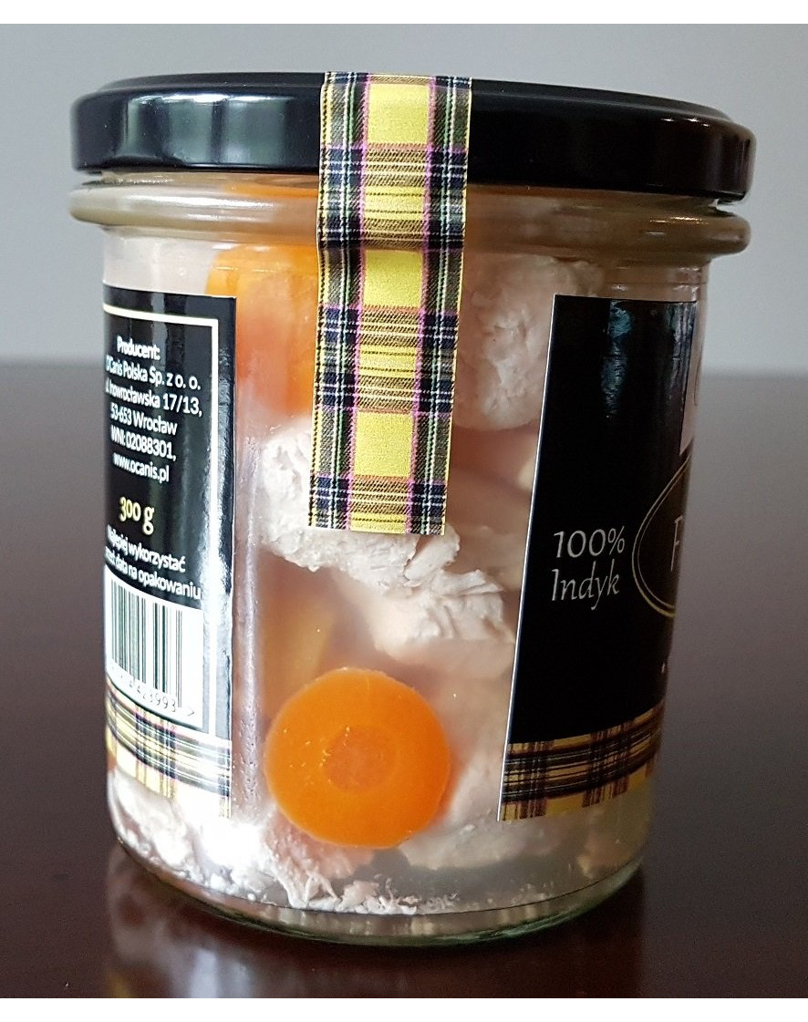 Doplnkové jedlo pre psa v pohári. Obsahuje nakrájané morčacie prsia v prírodnom vývare (vývar), tekvicové semienka, mrkvu a sušenú marhuľu. Žiadne konzervačné látky alebo želatína. Uchovávajte pri teplote do 20 ° C